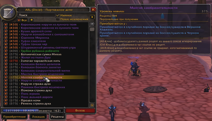 Аддон AckisRecipeList 3.3.5 — это удобный аддон, который помогает собирать все рецепты профессий в игре и быстро находить нужные вам рецепты. Он показывает список полученных и еще не изученных рецептов, предоставляя подробную информацию из собственной базы данных.