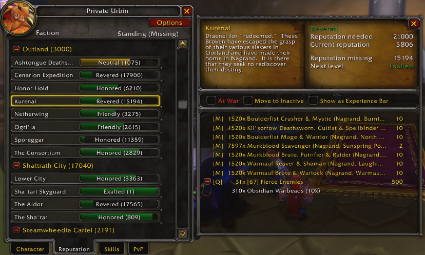 - Отображение репутации: показывает текущий уровень репутации с каждой фракцией и количество очков, необходимых для перехода на следующий ранг;