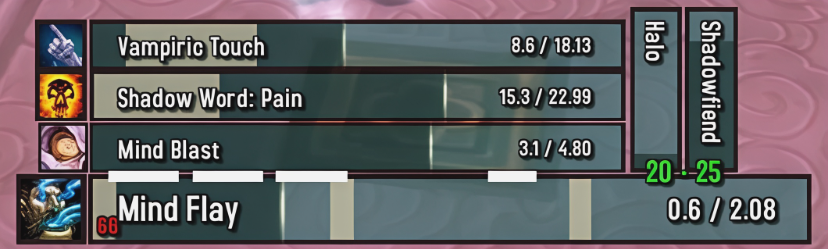 - Индикаторы канализируемых заклинаний: Встроенные визуальные подсказки помогают следить за продолжительностью каналов, минимизируя время простоя и повышая эффективность боевой ротации;