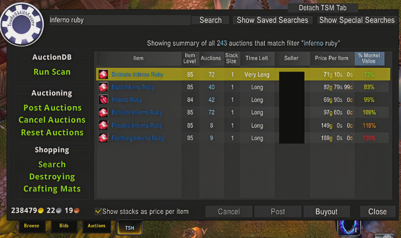 TradeSkillMaster значительно облегчает торговлю и управление имуществом, позволяя полностью сосредоточиться на заработке золота.