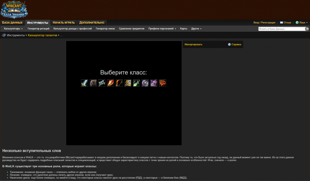 Калькулятор талантов — это интерактивная схема веток умений всех классов в версии WotLK 3.3.5. Он полностью повторяет внутриигровую систему талантов, позволяя: