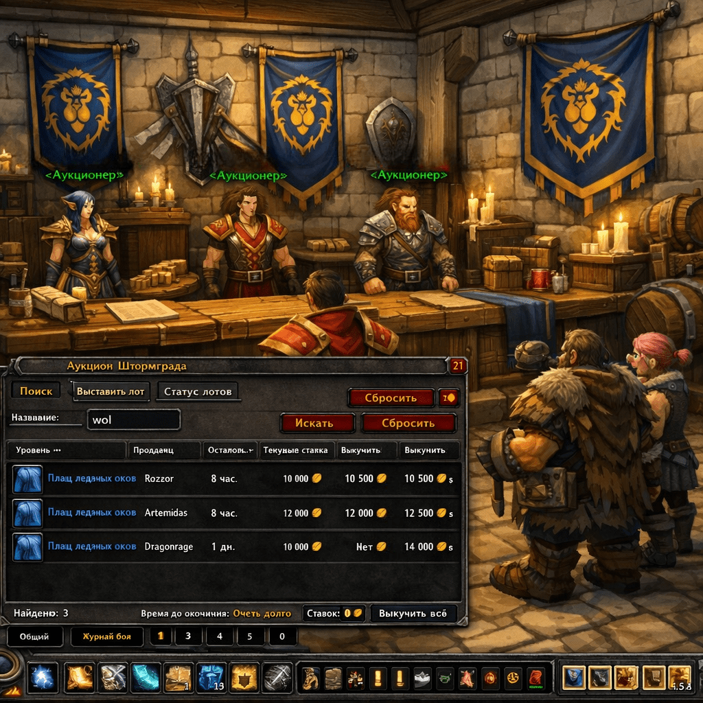 Аукцион – это сердце экономики Штормграда. Здесь можно:
