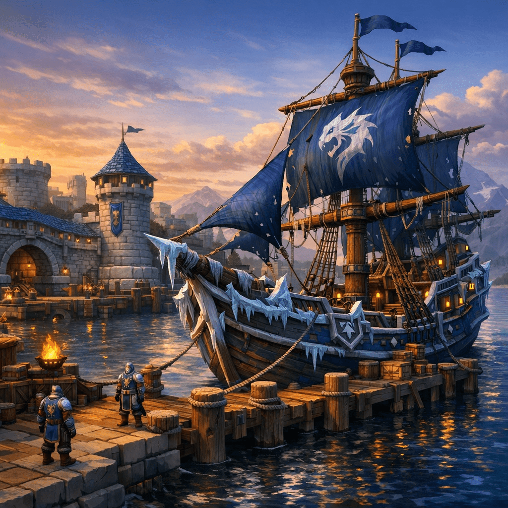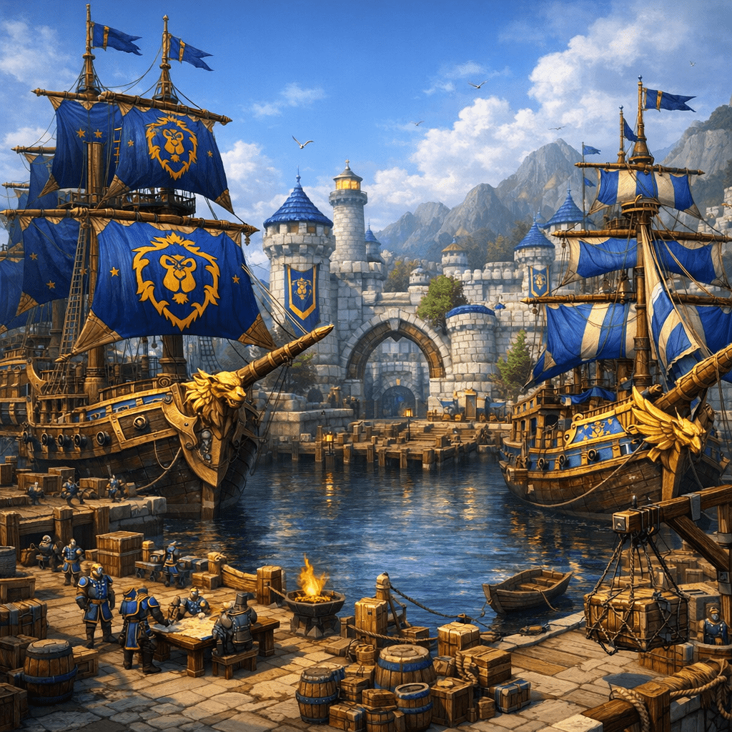 Штормград – это не только игровой центр, но и символ стойкости. Город был дважды разрушен (во время Первой Войны орками и во время нашествия Смертокрыла в Катаклизме) и дважды восстановлен. Сегодня за его массивными белокаменными стенами кипит жизнь: торговцы зазывают покупателей, гильдии набирают новобранцев, а искатели приключений планируют рейды в самые опасные уголки мира.