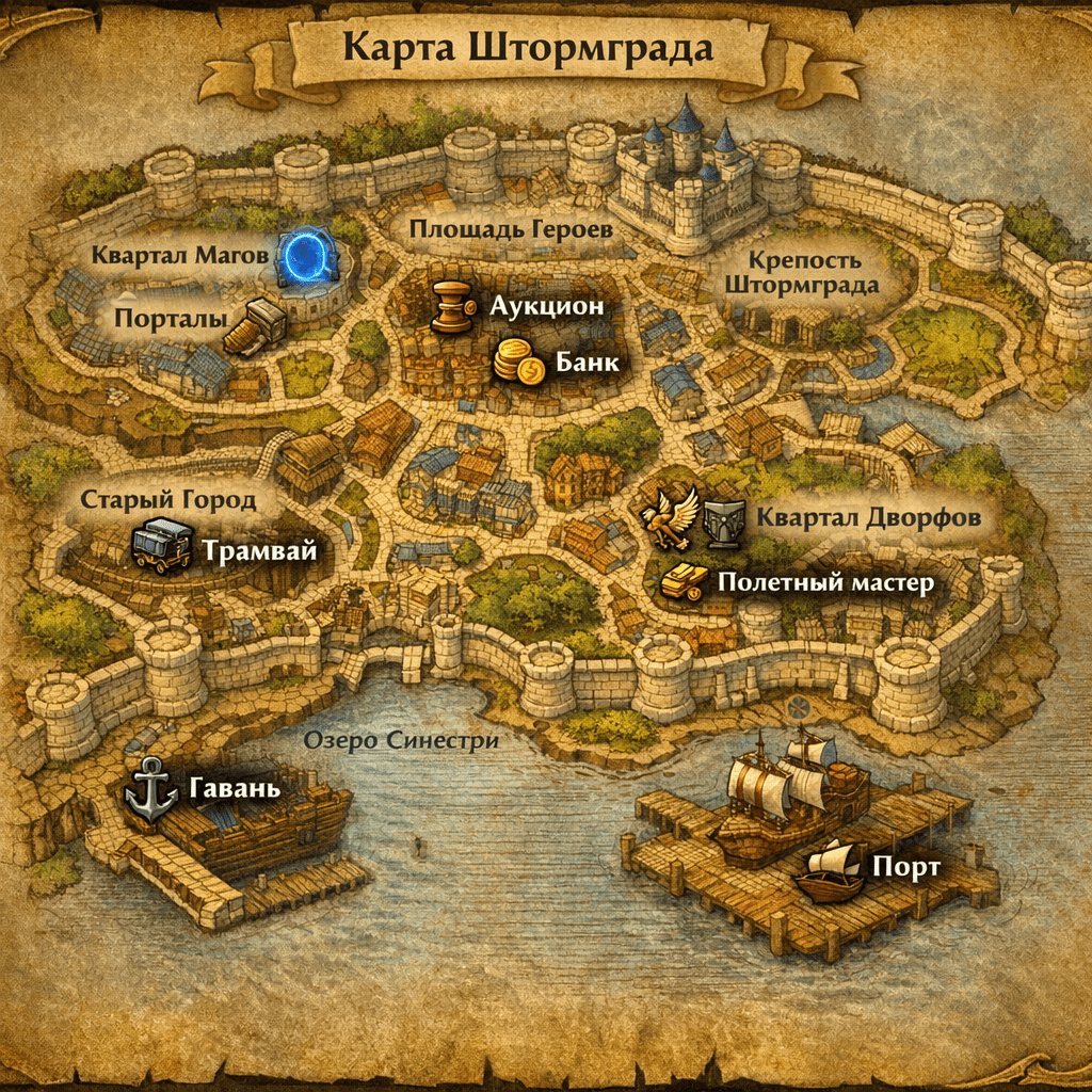 Штормград. Для миллионов игроков World of Warcraft это название символизирует величие, силу и непоколебимый дух Альянса. Это не просто столица расы людей – это сердце всего Альянса, место, где вершится судьба Восточных Королевств и за стенами которого начинаются великие истории. От величественных башен Кафедральной площади до мрачных переулков Старого Города, Штормград является домом для тысяч героев, торговцев, стражников и искателей приключений.