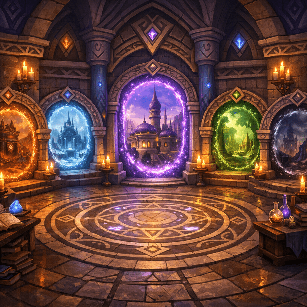 Портальная комната в Башне магов – это ключ к быстрым путешествиям. Запомните, какие порталы куда ведут.